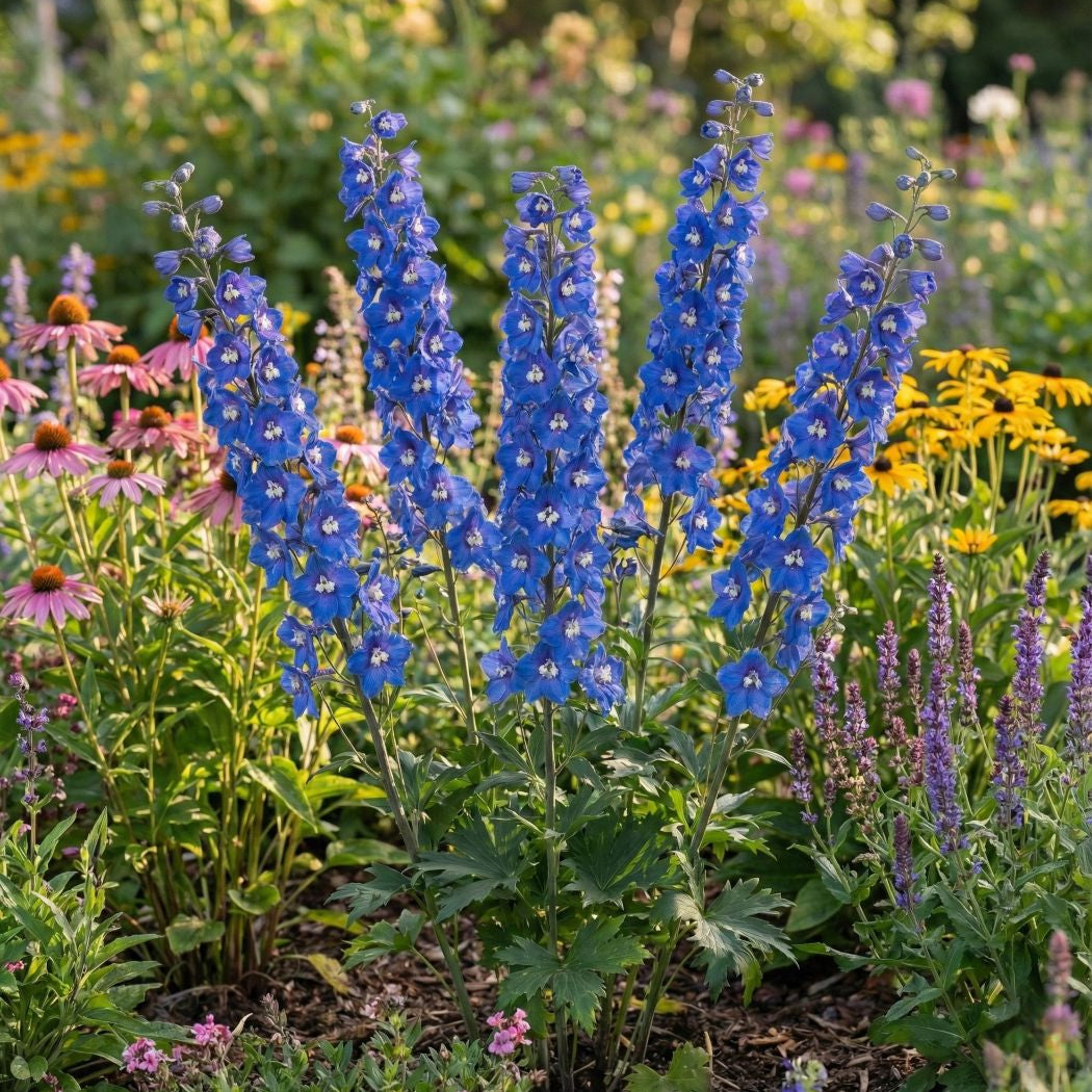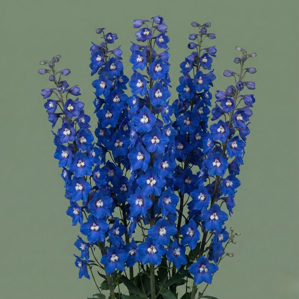 Delphinium ‘Aurora Blue’ (Delphinium × hybridum) produces tall, elegant spires packed with rich blue flowers that add a bold, vertical accent to any garden bed or floral arrangement. A standout in the Aurora F1 series, this hybrid variety is prized for its uniform growth, hybrid vigor, and exceptional stem quality.