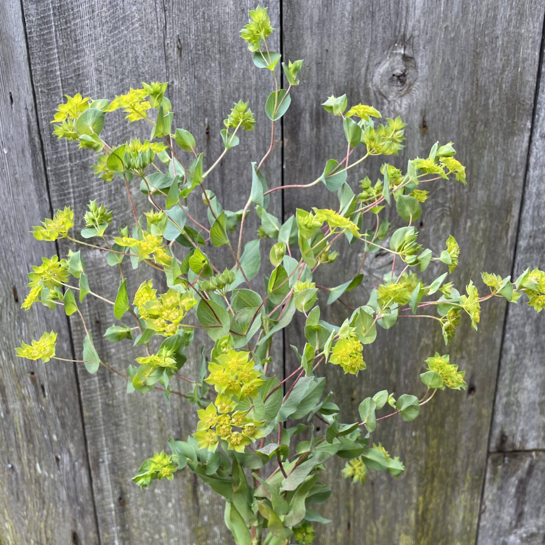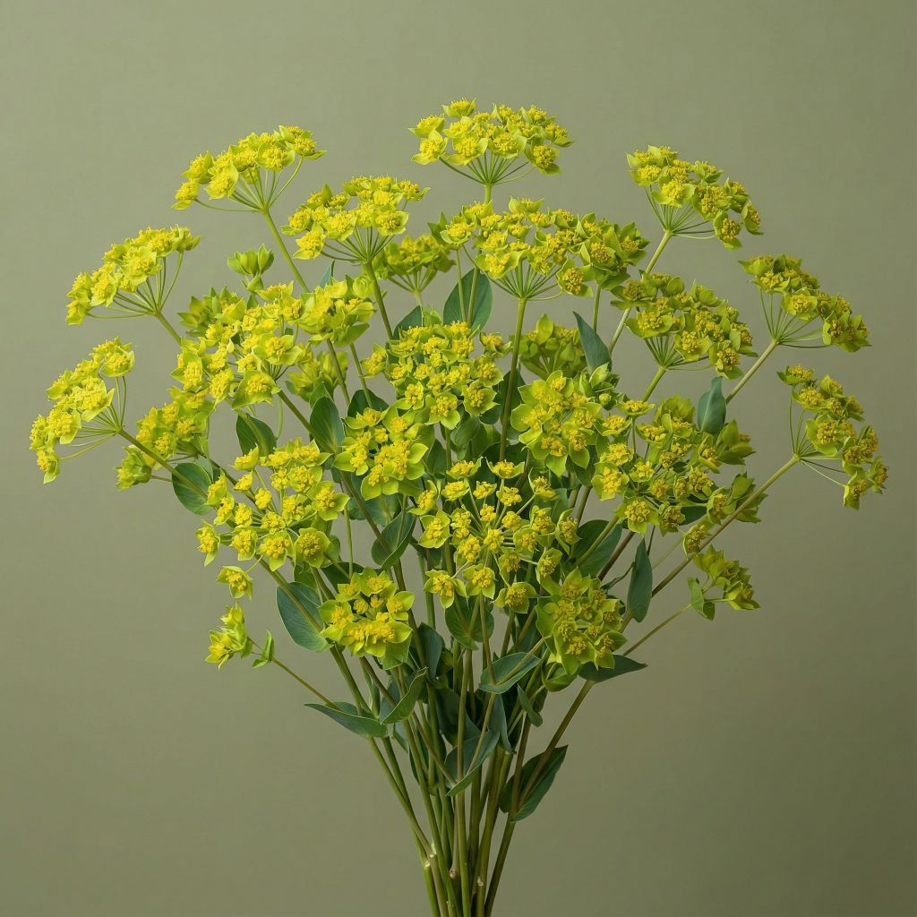 Bupleurum ‘Green Gold’ (Bupleurum rotundifolium) is a tall, elegant annual prized for its bright yellow-green blooms and rounded foliage that add texture and contrast to fresh arrangements. A favorite among cut-flower growers, Green Gold produces long, slender stems topped with umbels of lime-green bracts that hold their color and structure beautifully in the vase. This variety performs best in full sun with moderate moisture and is an excellent choice for borders, landscapes, and bouquet fillers. Introduced in 2020, it’s valued for its vigor, uniformity, and its ability to attract beneficial insects and hummingbirds to the garden.