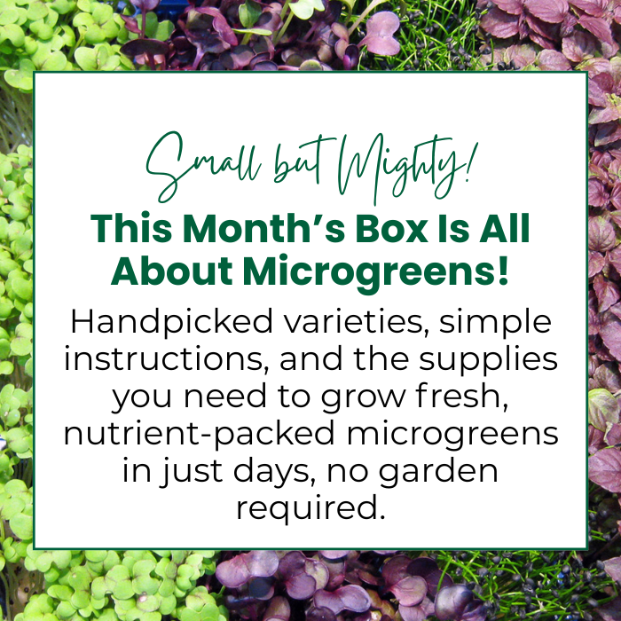 Choose from one of our three tiers: Seeds of the Month, Small Sprouts, or Heavy Harvester. You’ll receive a surprise every month with everything you need for seasonal gardening. We will send out a sneak peek email several days before we ship!