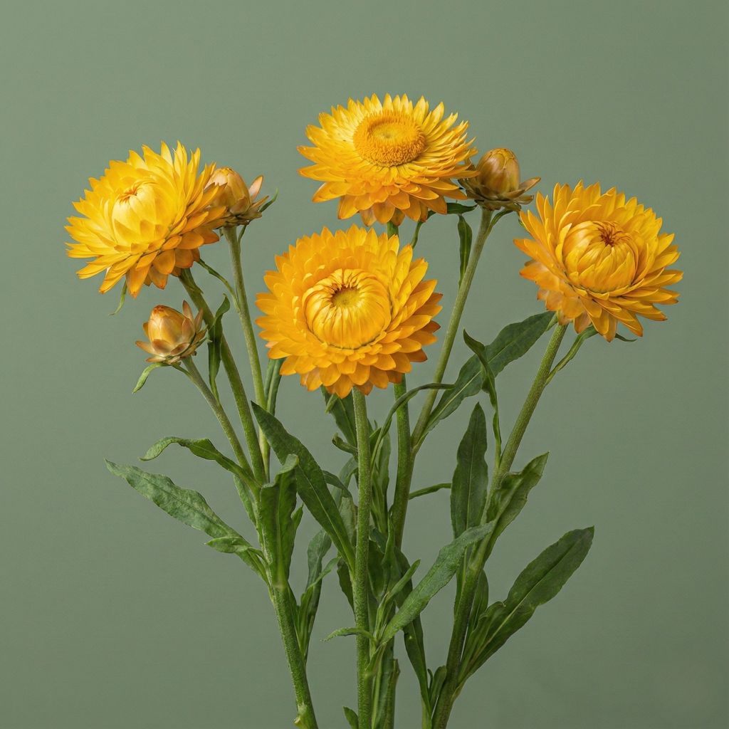 King Size Golden Strawflower (Helichrysum bracteatum) shines with rich golden-yellow blooms that bring a warm, sunlit glow to gardens and floral arrangements. A standout in the King Size Series, this tall annual is prized for its long stems, large papery blooms, and excellent performance in both fresh and dried arrangements.