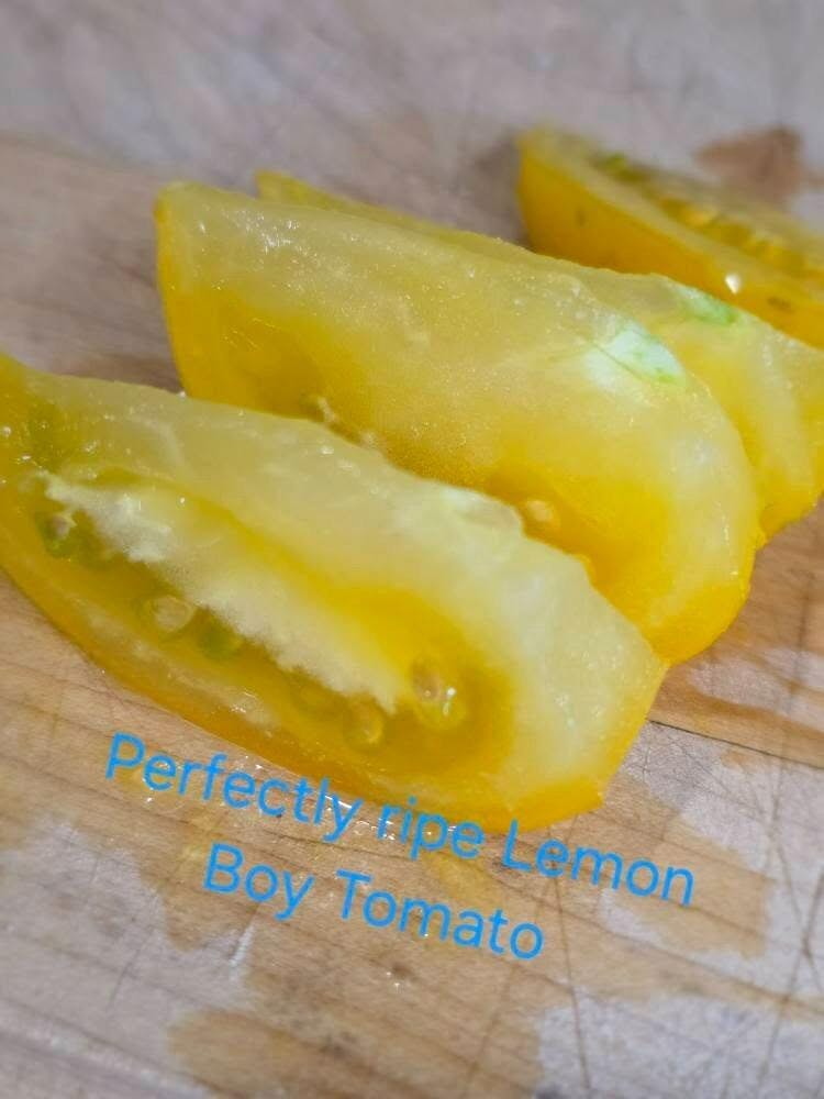 Unlike other gold tomato varieties, Lemon Boy Tomato has a bright yellow color like a lemon. It also is higher-yielding than comparable gold tomato varieties. The eye-catching fruits average 6-8 ounces each and provide brilliant color to any salad or vegetable medley.