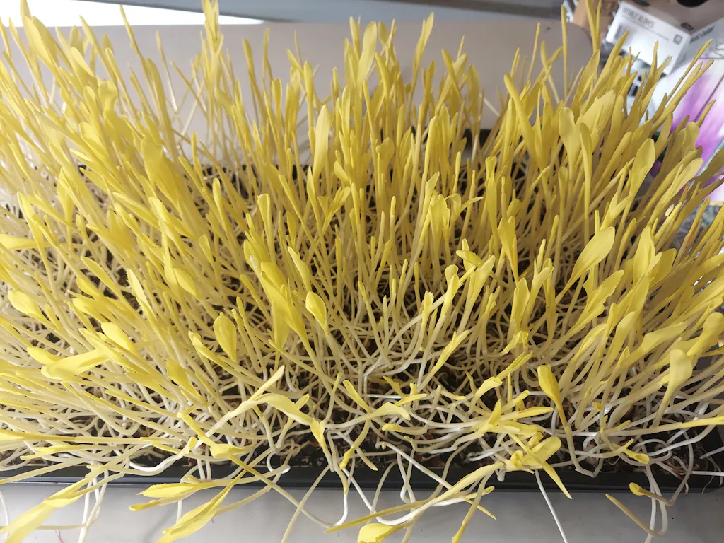 Grow delicious and nutritious popcorn microgreens with ease. Just pre-moisten the seed starting mix, sprinkle popcorn kernels on top, and cover with 1/2” of the same mix. In order to achieve the yellow coloring and retain the sweet flavor, grow your popcorn microgreens in the dark! Keep the seeded tray indoors with no light, use a cover that is lightweight but impermeable to light. Using a spray bottle, water your shoots lightly and keep the medium moist. Germination should occur in 3 days. For harvesting, cut off shoots when they’re 2-6 inches tall. Enjoy your fresh, nutritious microgreens!