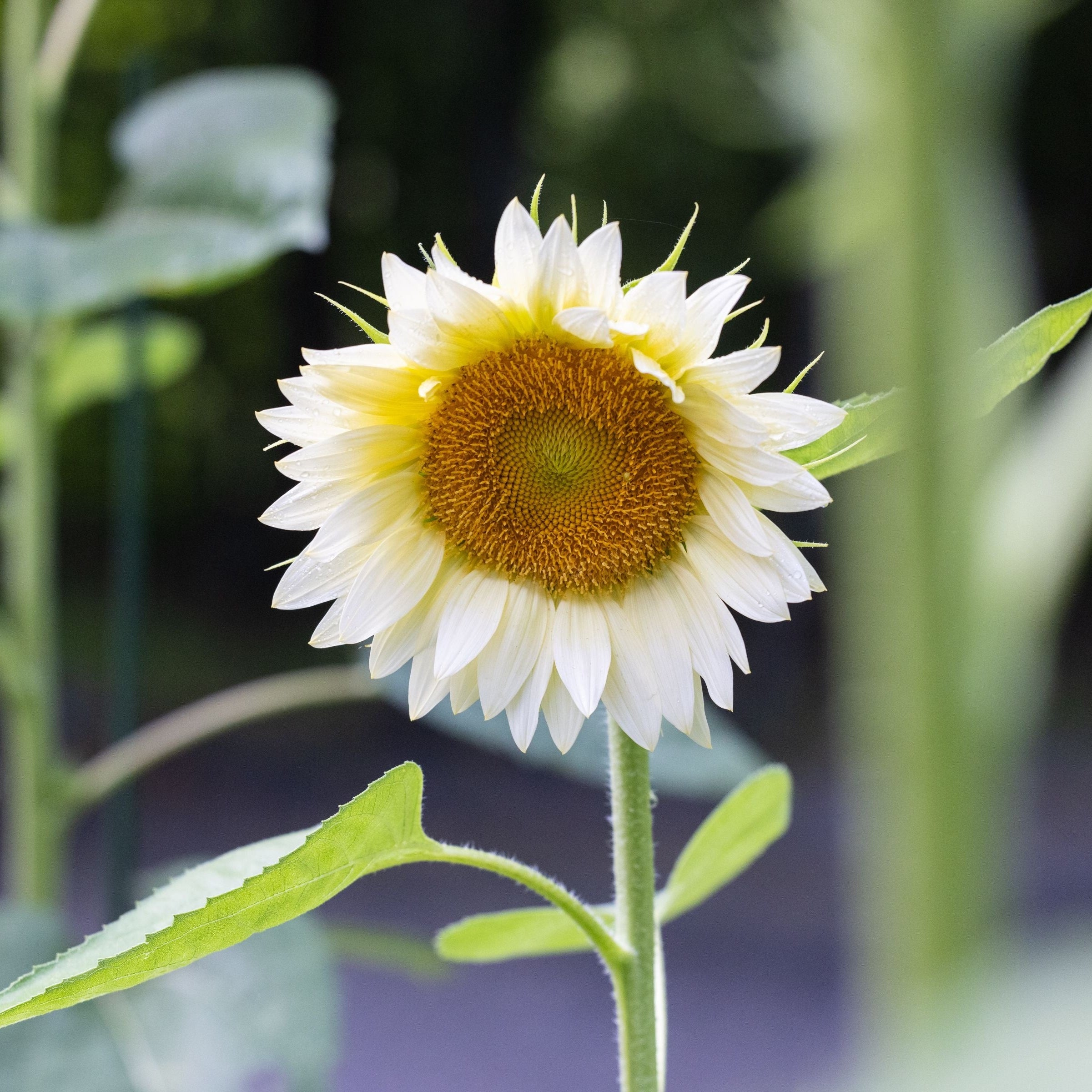 ProCut White® Lite Sunflower is a hybrid sunflower variety that produces stunning white petals on a light-colored disk. This variety is similar to our White Nite Sunflower, but with a green to gold center. The petals are almost bleach white with a tinge of cream to yellow coloring towards the center. Plants produce a single bloom that averages 3-5" in diameter. If using for cut flowers, we suggest harvesting the blooms right as they start to open. White petals can be more susceptible to insect damage and this will prevent the gorgeous heads from becoming blemished.