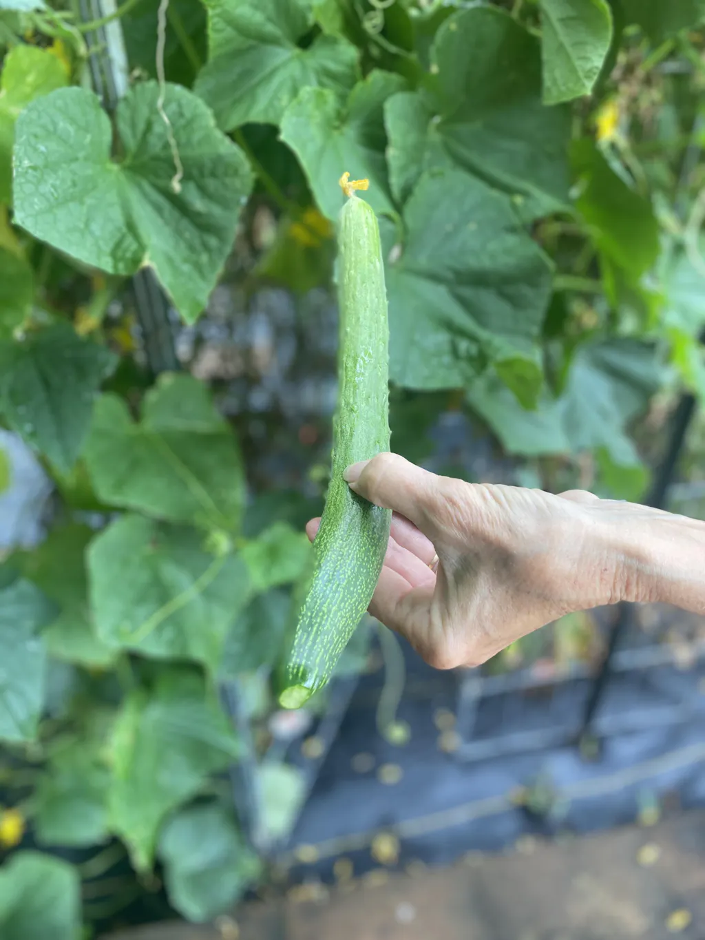 Trellising will also keep the fruits cleaner and save time with harvesting and processing. It will also help to prevent fruit discoloration or yellowing from sitting on the soil surface. Our Hortonova Trellis Netting works great for trellising cucumbers and is easy to install.